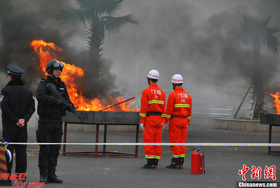 12月28日,广西柳州在该市体育中心集中公开焚烧销毁毒品83公斤,其中海洛因5.66公斤,苯丙胺类毒品9.877公斤,氯铵酮25.37公斤,其他类毒品42.82公斤。自2010年以来,柳州市共破获毒品刑事案件2000余起,其中特大案件200多起。中新社发 周潇男 摄
