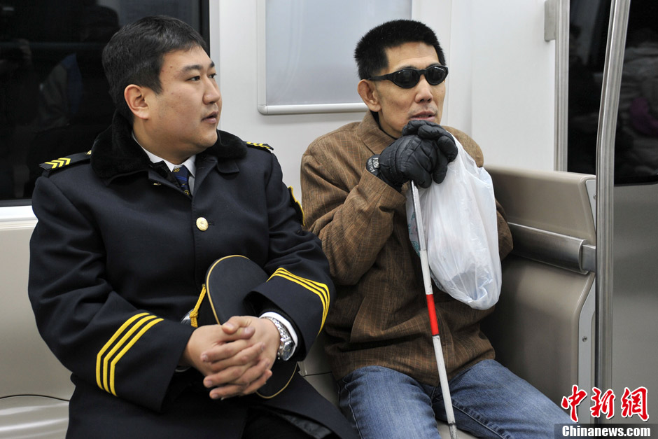 盲人体验北京地铁新线 乘车转站“无缝连接”