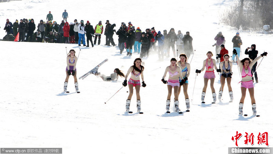 吉林比基尼滑雪大赛 中俄佳丽不惧严寒雪地露春光