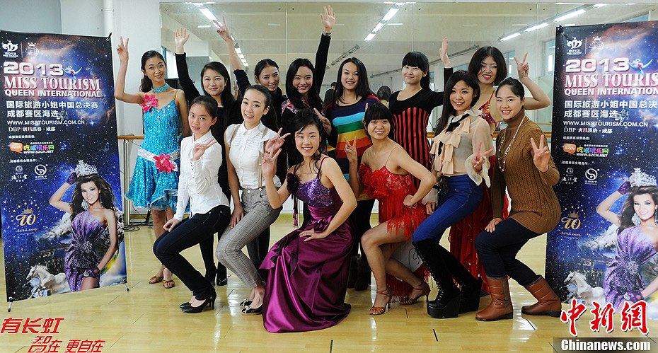 2012年12月31日,国际旅游小姐四川成都站海选落幕,经过评委们现场认真筛选有50多名佳丽进入初赛。据悉,成都站半决赛将在明年1月下旬进行,半决赛选手主要来自电子科大成都学院航空乘务专业、理工大学、川师等大专院校。叶建 摄