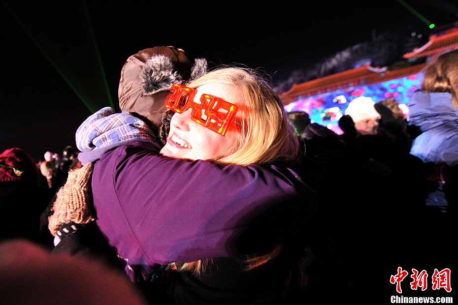 2013年1月1日,北京皇家园林——颐和园举行倒计时庆典喜迎新年。12月31日夜晚,世界文化遗产——皇家园林颐和园举办“2013北京迎新年倒计时暨北京高端旅游推广活动”,数千名热情的市民和外国游客参加了庆典活动。颐和园内万寿山灯光闪烁,千米长廊宫灯悬挂,玉带桥、八方亭、文昌阁、知春亭在夜幕中亮起景观灯。数千人聚集在一起倒计时,迎来2013年。继去年首次举办天坛新年倒计时活动以来,北京已经加入国际新年倒计时庆典行列。图为颐和园新年倒计时庆典现场。中新网记者 金硕 摄