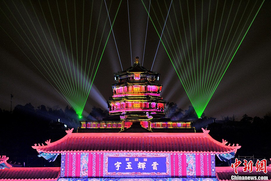 2013年1月1日,北京皇家园林——颐和园举行倒计时庆典喜迎新年。12月31日夜晚,世界文化遗产——皇家园林颐和园举办“2013北京迎新年倒计时暨北京高端旅游推广活动”,数千名热情的市民和外国游客参加了庆典活动。颐和园内万寿山灯光闪烁,千米长廊宫灯悬挂,玉带桥、八方亭、文昌阁、知春亭在夜幕中亮起景观灯。数千人聚集在一起倒计时,迎来2013年。继去年首次举办天坛新年倒计时活动以来,北京已经加入国际新年倒计时庆典行列。图为颐和园新年倒计时庆典现场。中新网记者 金硕 摄