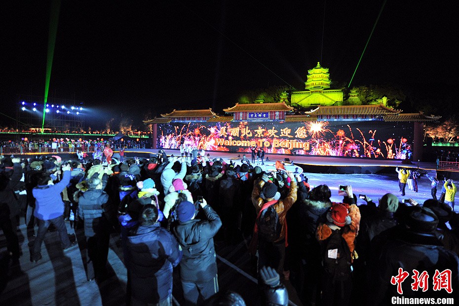 2013年1月1日,北京皇家园林——颐和园举行倒计时庆典喜迎新年。12月31日夜晚,世界文化遗产——皇家园林颐和园举办“2013北京迎新年倒计时暨北京高端旅游推广活动”,数千名热情的市民和外国游客参加了庆典活动。颐和园内万寿山灯光闪烁,千米长廊宫灯悬挂,玉带桥、八方亭、文昌阁、知春亭在夜幕中亮起景观灯。数千人聚集在一起倒计时,迎来2013年。继去年首次举办天坛新年倒计时活动以来,北京已经加入国际新年倒计时庆典行列。图为颐和园新年倒计时庆典现场。中新网记者 金硕 摄