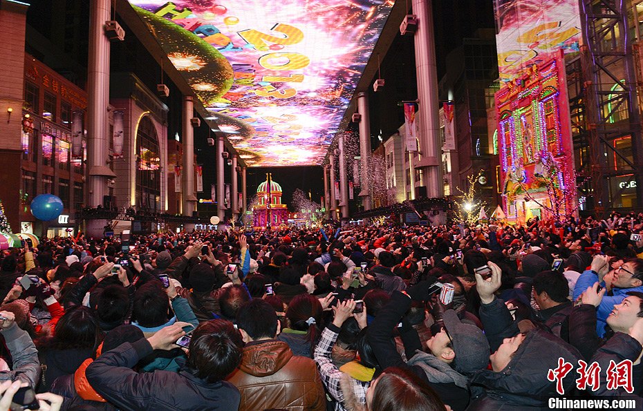 12月31日晚,数千名青年齐聚北京世贸天阶天幕下,共同参与“2013北京新年倒计时活动”,迎接新的一年到来。刘震 摄