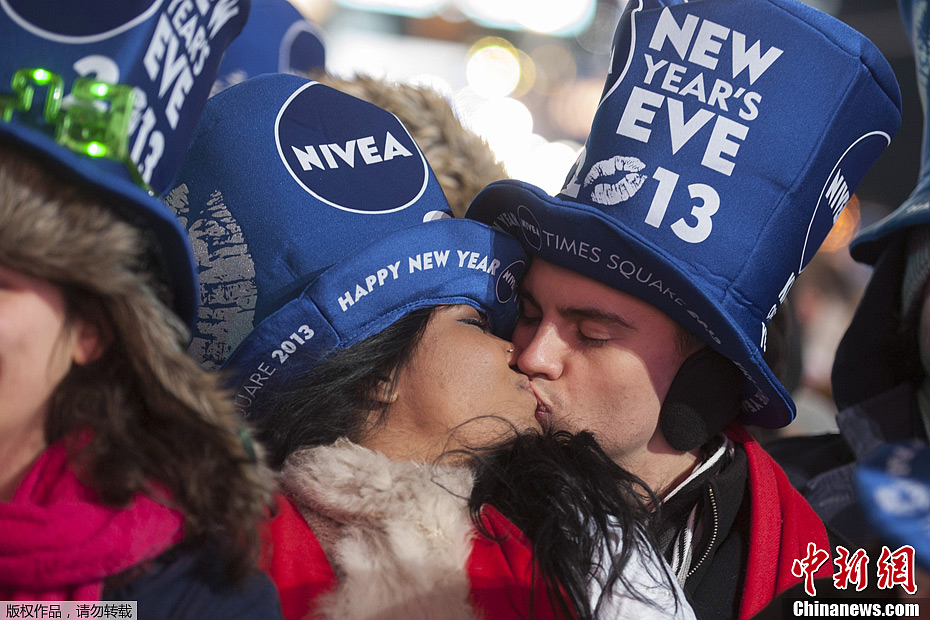 当地时间12月31日晚,美国纽约时报广场举行新年庆典,百万狂欢者现场迎接2013年的到来。