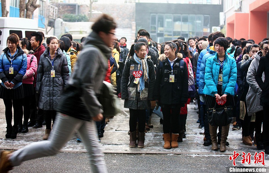 1月1日,来自山东各地的1000多名服装表演、空中乘务、影视表演专业的艺术考生聚集在青岛海之魂艺术学校,参加艺考推介会。身穿比基尼的考生轮流走上丅型舞台,以形体展示,艺术表演等方式向艺术高校的专家教授们推荐自己。中新社发 徐崇德 摄