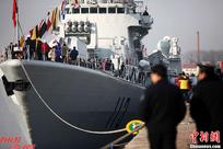 当地时间1月1日上午,第十三批护航编队黄山舰抵达沙特阿拉伯吉达港,开始为期5天的靠港补给休整。图为当地华人华侨到码头迎接。中新社发 肖德伦 摄