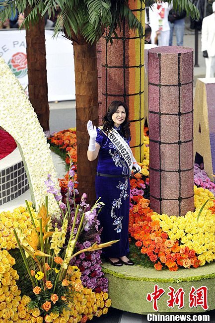 当地时间1月1日上午,美国南加州帕萨迪纳市举行第124届玫瑰花车大游行(Rose Parade),迎接2013年新年的到来。中新社发 毛建军 摄