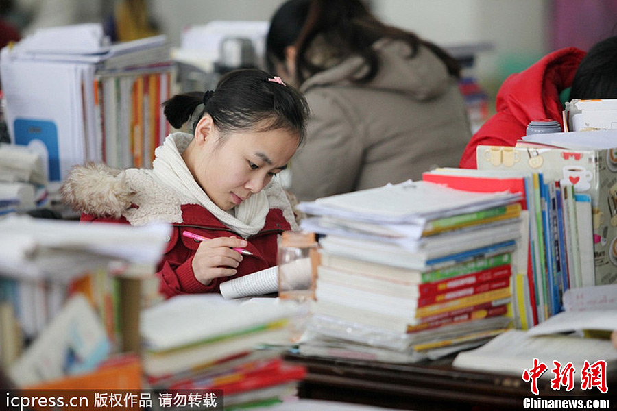 2013年1月1日,在山东省潍坊学院图书馆,参加2013年全国硕士研究生统一入学考试的考生在抓紧复习。张驰 摄 图片来源:东方IC 版权作品 请勿转载