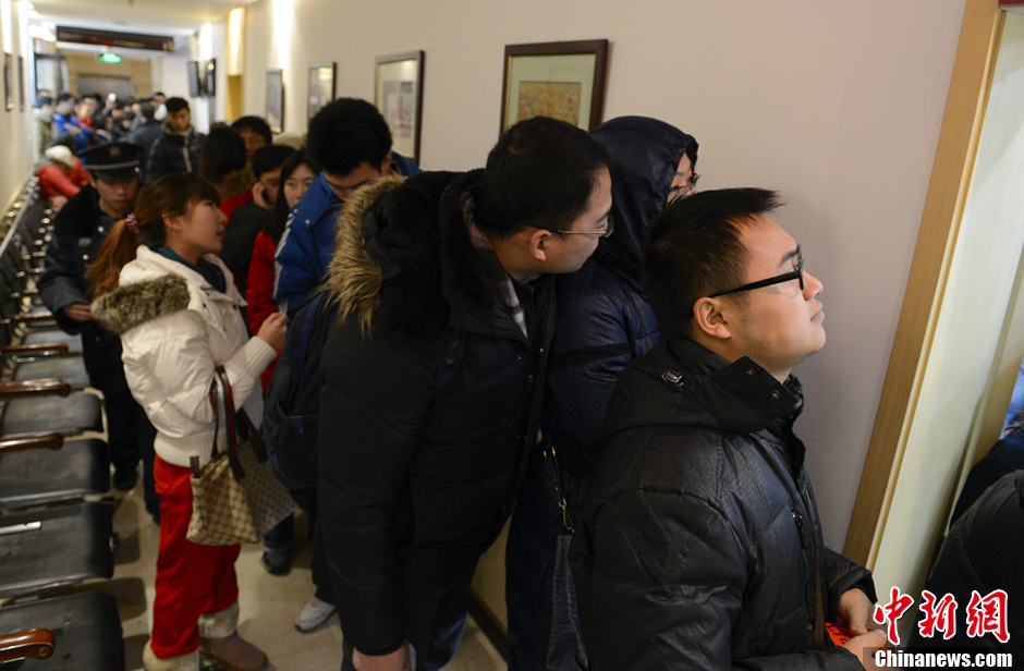 1月4日,北京市海淀区民政局婚姻登记处领取结婚证的年轻人。因寓意“爱你一生一世”,2013年1月4日备受准新人青睐。新年上班第一天,北京迎来今年的首个婚姻登记高峰日。据北京市海淀区民政局婚姻登记处工作人员介绍,今天预计登记结婚的新人约为2500对。中新社发 刘震 摄