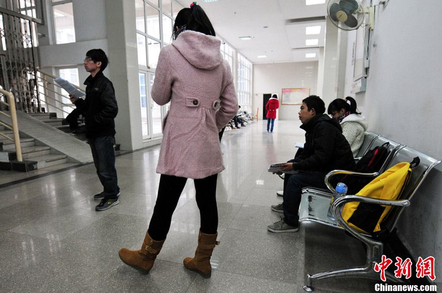 2013年1月4日,福州,福建农林大学参加2013年全国硕士研究生统一入学考试的考生在校园楼道内进行最后的复习。 图片来源:东方IC 版权作品 请勿转载