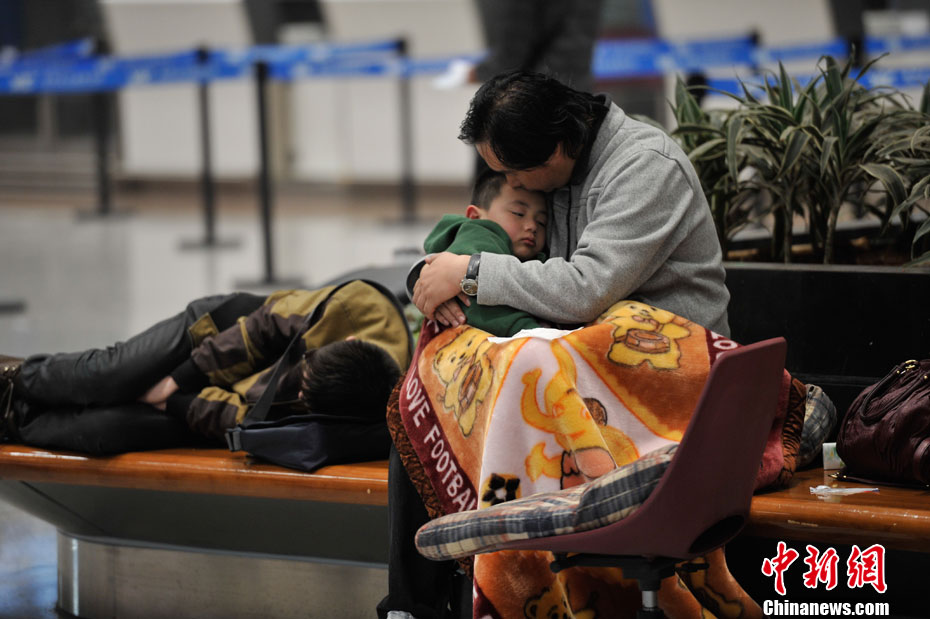 昆明机场航班延误 滞留旅客疲惫不堪