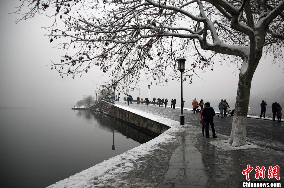 “晴湖不如雨湖,雨湖不如雪湖”。一场大雪,让杭州西湖展现出了与众不同的美景。西湖在雪的粉饰下,显出另一番韵味。图为西湖断桥景色如画。中新社发 李晨韵 摄