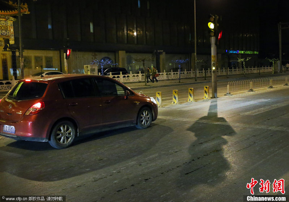 2012年1月3日,北京,华威南路,黄灯突然亮起,一车紧急刹车停下。元旦期间,“闯黄灯扣6分”是网民及公众关注的焦点,也成了不少司机的“心病”。为了应对“闯黄灯扣6分”的规定,很多司机发现绿灯已亮一段时间后,便减缓车速避免“碰线”,不少司机反而觉得“红灯让人更安心”。尹亚飞 摄 图片来源:CFP视觉中国