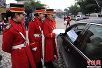 重庆洋人街制服美女行为艺术宣传新交规