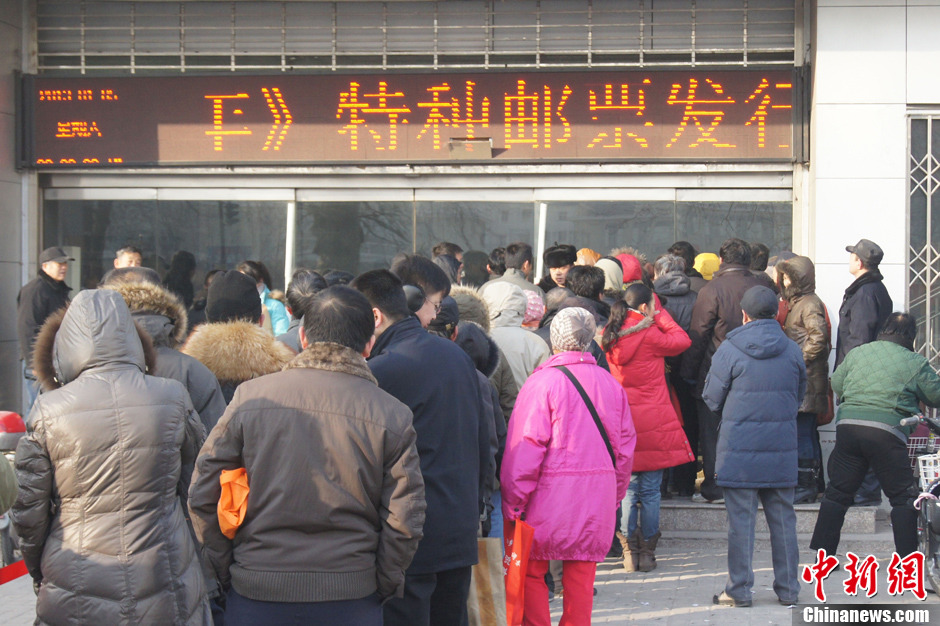 民众寒冬排队购买蛇年生肖邮票