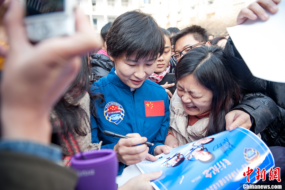 “神女”刘洋回娘家 先到母校谢恩师