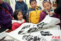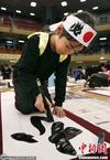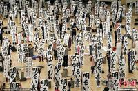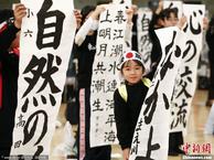 当地时间1月5日,日本东京,来自日本各地的3100名选手参加新年书法比赛,吸引很多小朋友一展书法技艺。图片来源:CFP视觉中国