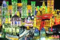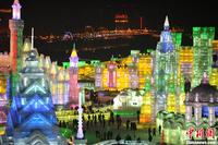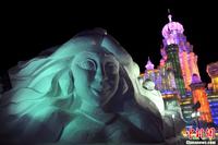 据介绍,冰雪大世界总用冰量18万立方米、用雪量16万立方米,建造九大景区。太阳岛雪雕艺术博览会以“雪的世界,雪的梦想”为主题,以“一首用雪演绎梦想世界的乐章”为主线,占地面积50万平方米,用雪量约9万立方米,建造六大景区和三个雪雕赛区。兆麟公园冰灯艺术游园会则以“欧陆冰雪情·印象哈尔滨”为主题,打造精品荟萃的冰雪艺术。中新网记者 金硕 摄