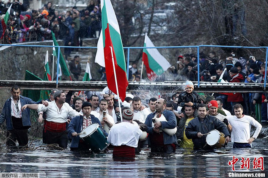 保加利亚民众冰水中舞蹈 庆祝“三王节”