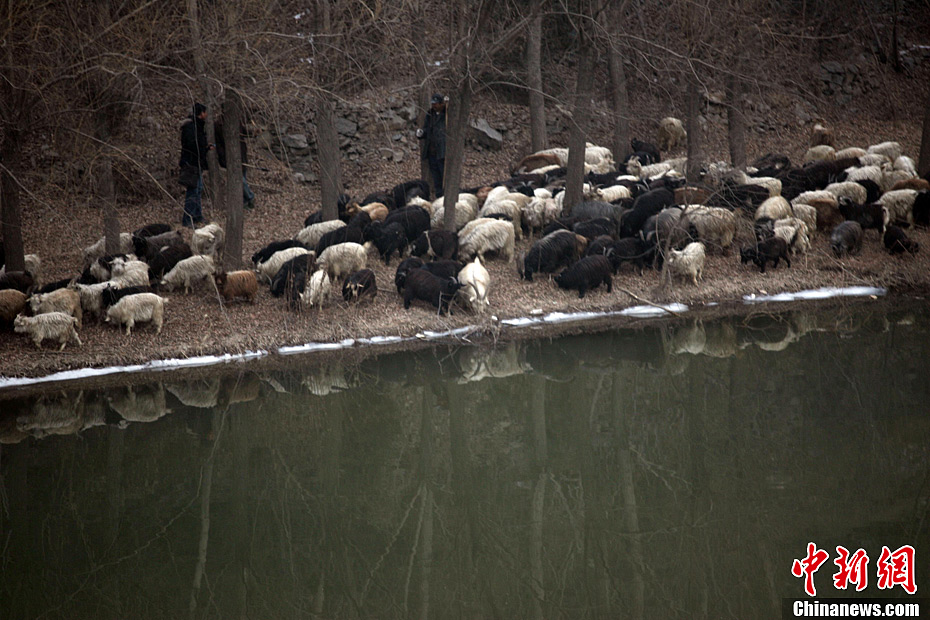2012年12月31日7时40分,位于山西省长治市潞城境内的山西天脊煤化工集团股份有限公司苯胺罐区一条送软管软管破损,污染物流入浊漳河,造成苯胺泄漏事故。泄漏苯胺随河水流出省外,处于受污河水下游的河北、河南两省也受到影响,三省联动应急,截流治污。截至记者发稿,事故未造成人畜伤亡,山西境内受污染水体苯胺浓度也已大幅下降。图为1月6日,农民在浊漳河边放羊。张云 摄