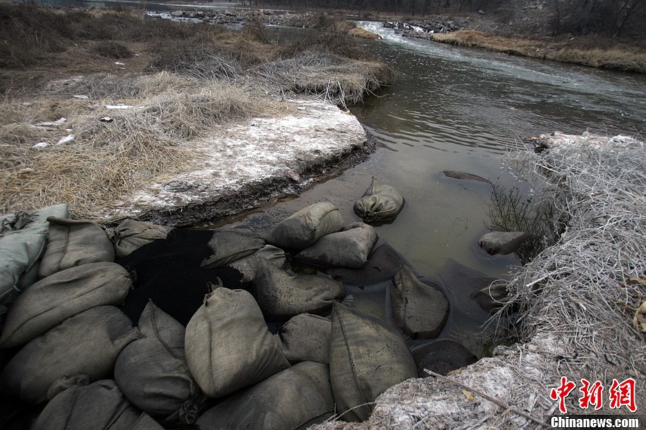 山西天脊煤化工集团股份有限公司8.7吨苯胺发生泄漏事故,泄漏苯胺随河水流出省外,处于受污河水下游的河北、河南两省也受到影响,三省联动应急,截流治污。截至记者发稿,事故未造成人畜伤亡,山西境内受污染水体苯胺浓度也已大幅下降。事故发生后,当地政府与企业启动应急预案,在排污渠、浊漳河分别进行活性炭吸附处理,并设置5个监测点实时监测水质。图为在排污渠与浊漳河交汇口已被竹炭包堆满。张云 摄