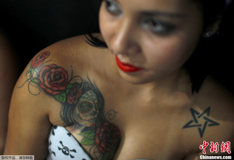 里约举行国际刺青纹身大会 爱好者齐聚大秀纹身