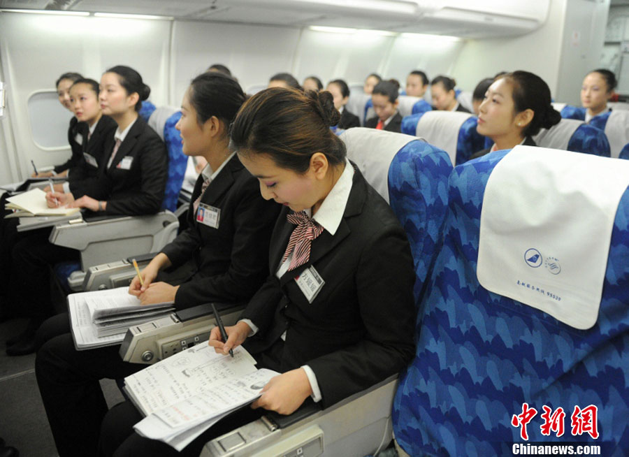 1月10日消息,南航新疆分公司的培训部对去年11月从一千多名报名者中脱颖而出的34名“准空乘”,在密集的航空英语、客舱服务技能、礼仪仪表、B737机型知识和实操、危险品、应急医疗救护等培训后,开始进行了客舱服务技能实操的课程培训。图为培训课程现场。冯明远 摄