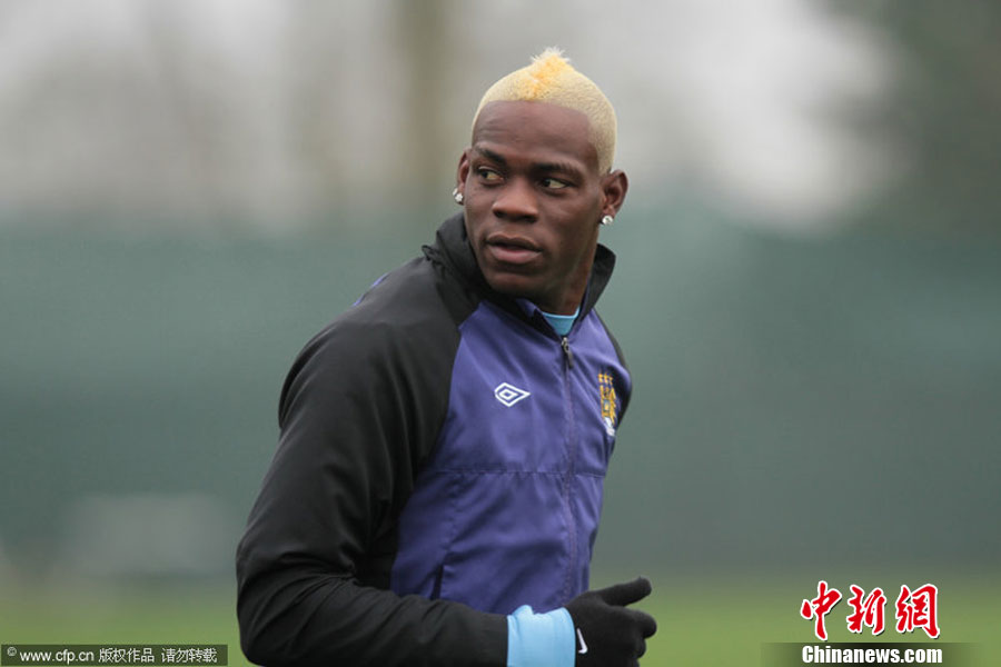 2013年1月10日,曼彻斯特,12/13英超,曼城训练备战,巴洛特利新发型亮相。图片来源:CFP视觉中国