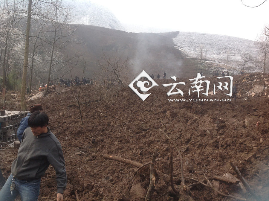 1月11日,1月11日上午8时20分,镇雄县果珠乡高坡村赵家沟村民小组发生一起滑坡泥石流事故,16余户村民被埋。徐宏毅 摄 图片来源:云南网