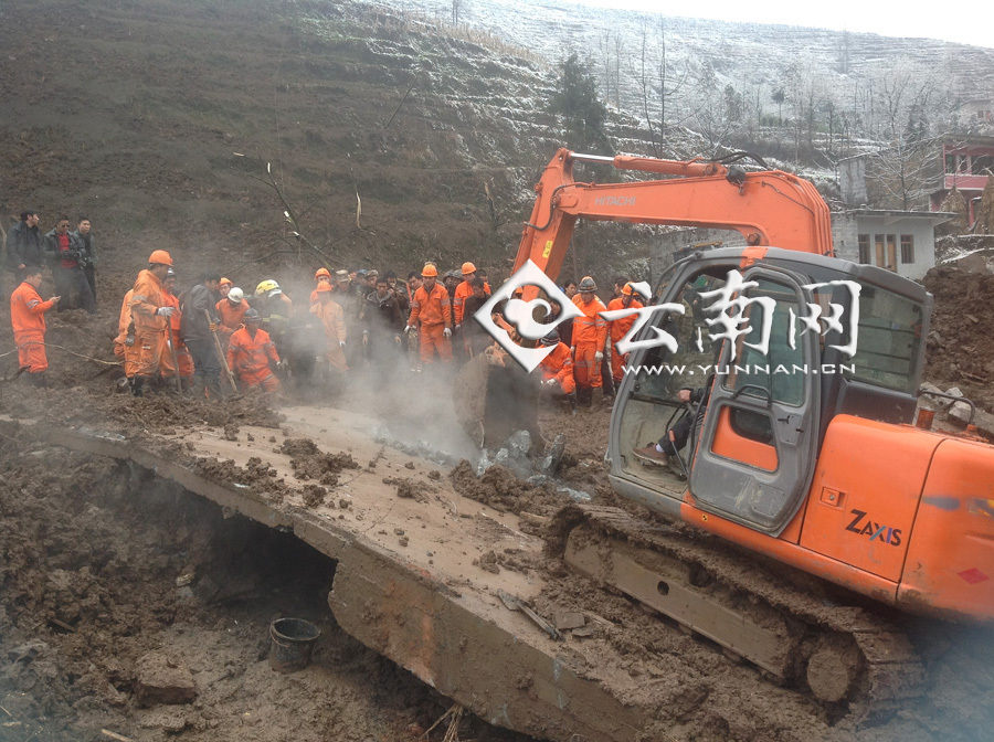 1月11日,1月11日上午8时20分,镇雄县果珠乡高坡村赵家沟村民小组发生一起滑坡泥石流事故,16余户村民被埋。徐宏毅 摄 图片来源:云南网