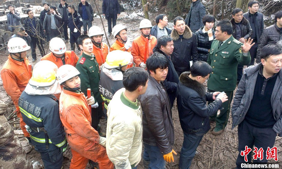 云南镇雄山体滑坡 消防官兵全力搜救被埋压村民