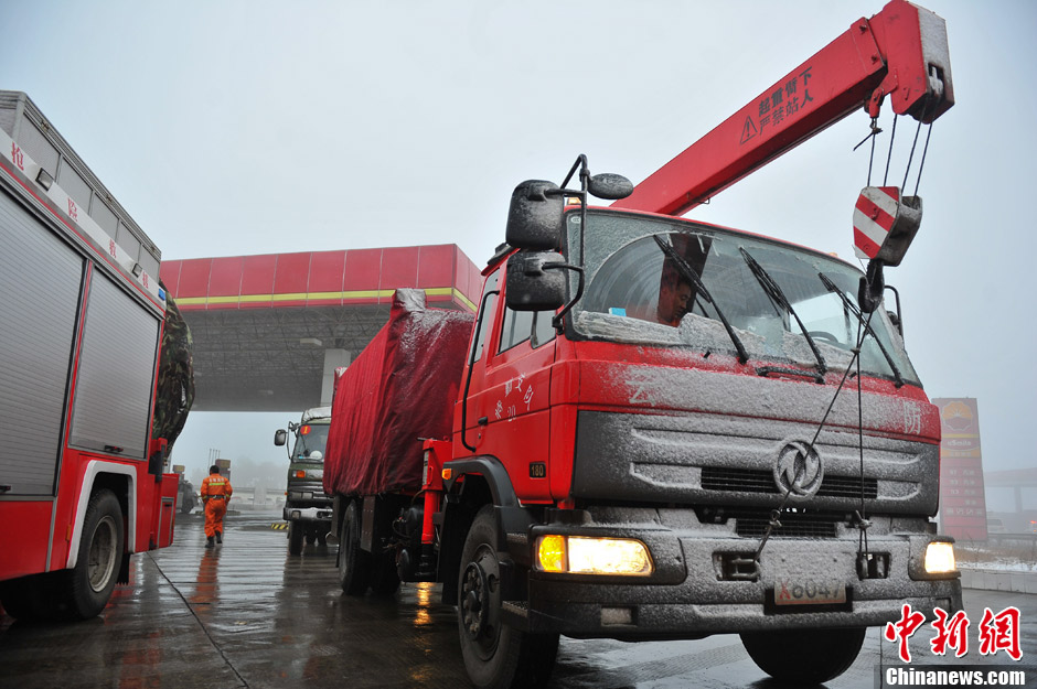 1月11日,云南昭通镇雄县果珠乡高坡村赵家沟发生山体滑坡事故,已致22死2伤。图为云南公安消防总队救援人员正冒雪赶赴事故现场。任东 摄