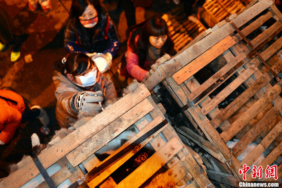 1月14日,一河北牌照大货车载有数百只小猫,共四十余箱,因遭遇车祸滞留长沙,货车目前在长沙县盼盼路与长星路交叉口的车辆事故救援中心。图为爱心人士在救助小猫。郭立亮 摄 图片来源:CFP视觉中国