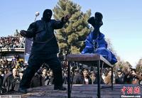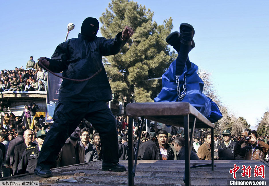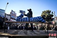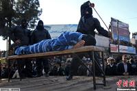 当地时间1月16日,伊朗Sabzevar,强奸犯遭鞭刑处罚,民众在街头围观。