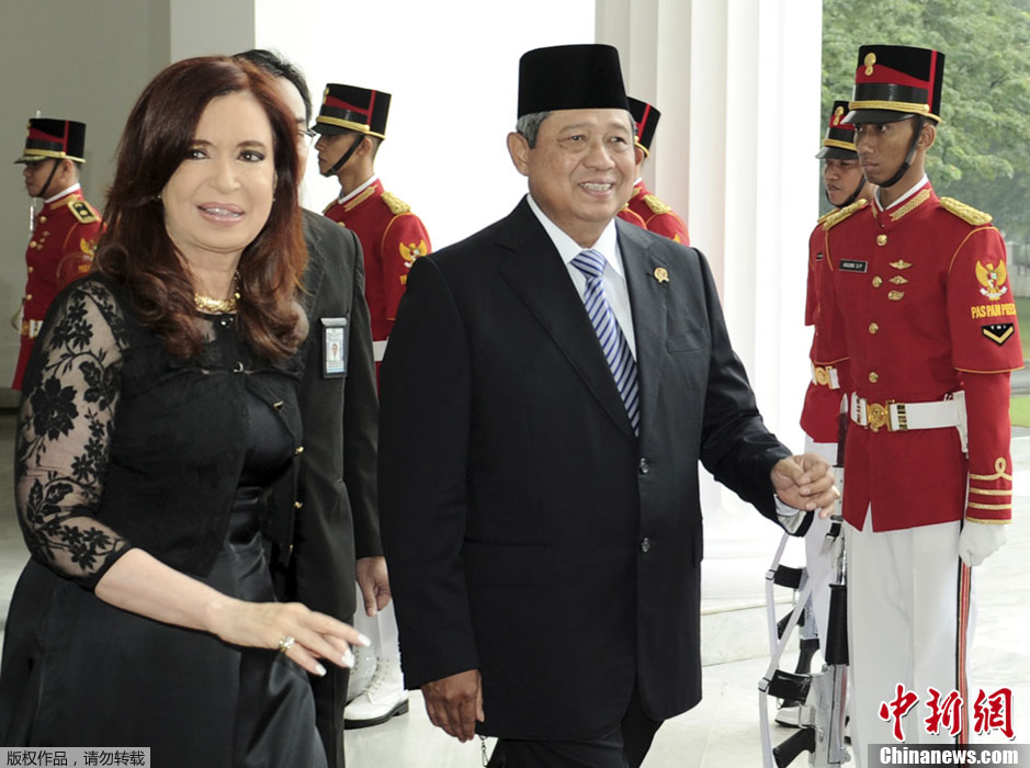 印尼总统府遭水淹 苏西洛照常会见阿根廷美女总统