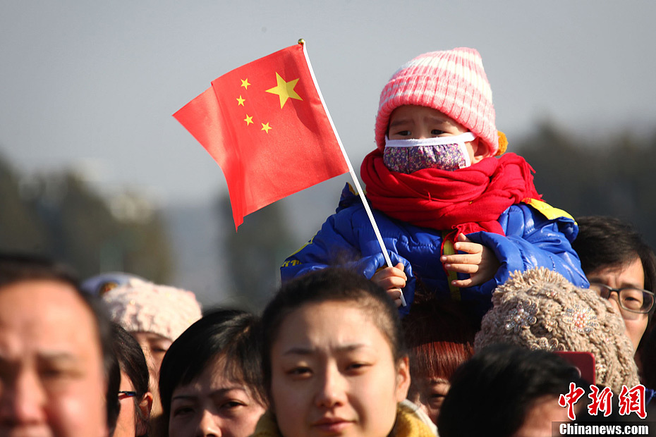 1月19日,历时201天,航程12449海里,在圆满完成亚丁湾、索马里海域护航任务以及访问澳大利亚、越南两国后,中国海军第十二批护航编队顺利返回浙江舟山某军港。图为一名护航官兵家属带着小孩跑向欢迎队伍。中新社发 踞振华 摄