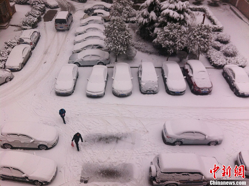 1月19日夜间的一场大雪,让泉城济南银装素裹,一片北国风光。图为20日大雪覆盖下的济南一小区。中新社发 胡洪林 摄