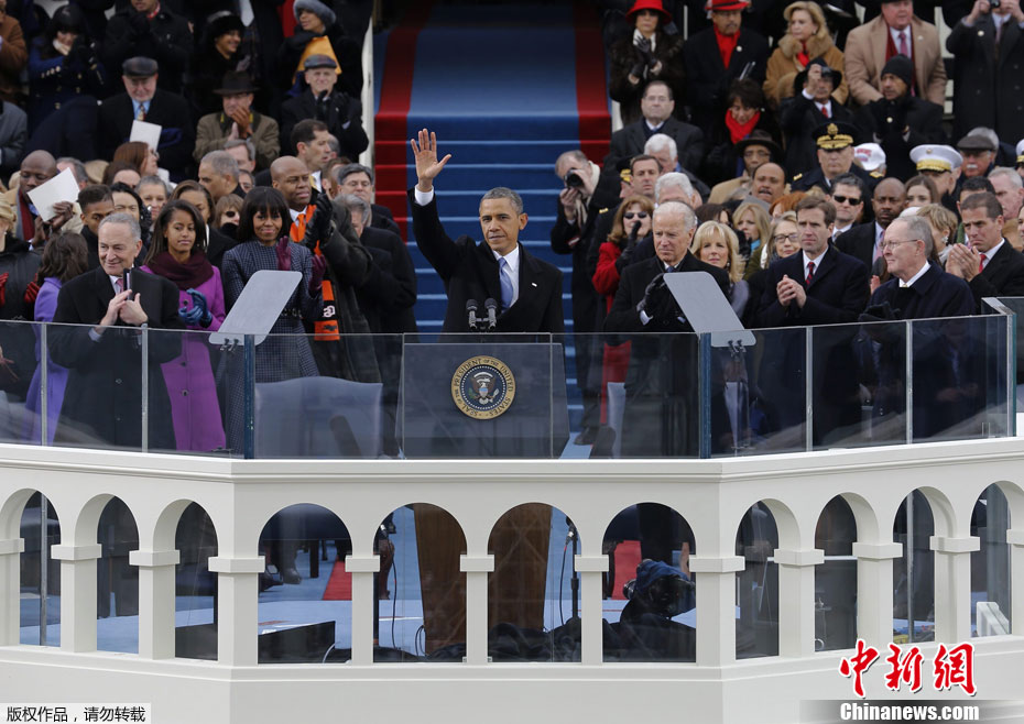 1月21日,美国连任总统奥巴马在华盛顿国会山举行公开宣誓就职仪式。