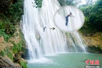 勇猛爱好者多米尼加挑战瀑布跳水