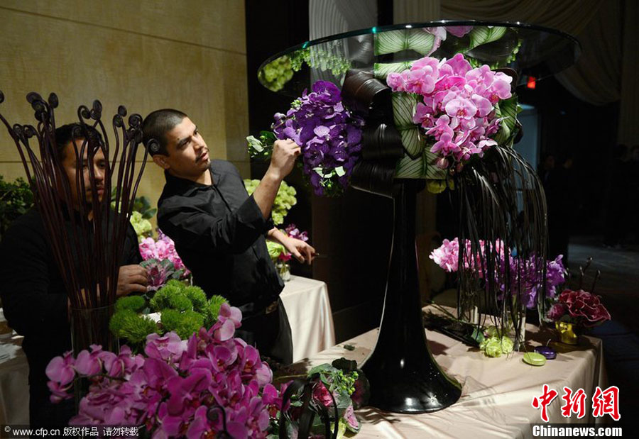 当地时间1月22日,第85届奥斯卡奖(85th Academy Awards ceremony)晚宴菜单公布。这次的晚宴将招待1500名宾客。以创新餐饮潮流而著称的奥斯卡盛宴主厨沃夫甘-帕克(Wolfgang Puck)展示厨艺。糕饼主厨雪莉-雅德(Sherry Yard)还把24K可食用黄金用气刷枪喷到巧克力制成的奥斯卡微型小金人身上。晚宴用酒、花饰布置等晚宴细节均呈现在大家面前。图片来源:CFP视觉中国