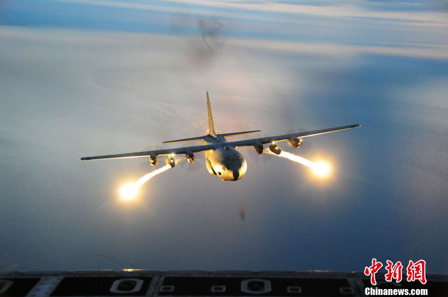 2012美国空军年度震撼摄影图片公布。由美国空军摄影师拍摄并挑选。图为演习上,一架C-5 Galaxy 发射闪光弹。图片来源:东方IC 版权作品 请勿转载