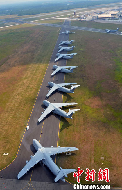 2012美国空军年度震撼摄影图片公布。由美国空军摄影师拍摄并挑选。图为美国Westover基地,C5 Galaxies飞机在跑道上。图片来源:东方IC 版权作品 请勿转载