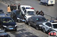 郑州市区五车连环追尾 两警车“中招”