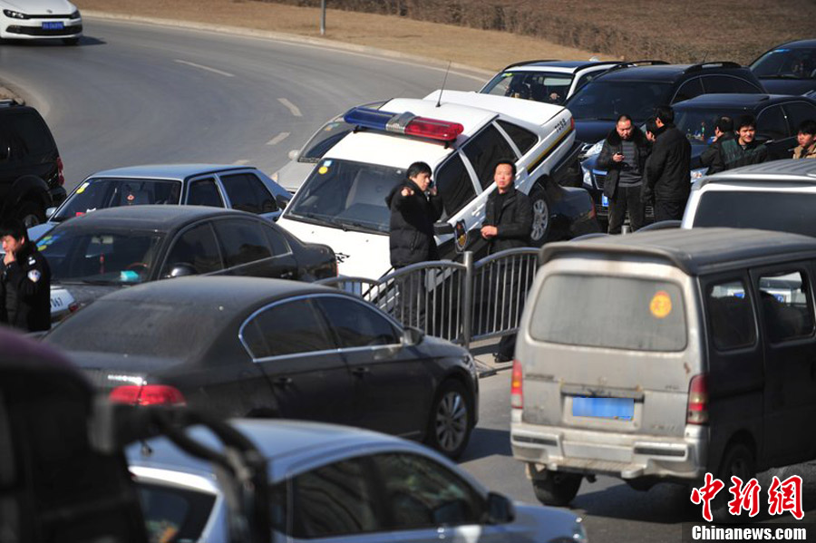郑州市区五车连环追尾 两警车“中招”