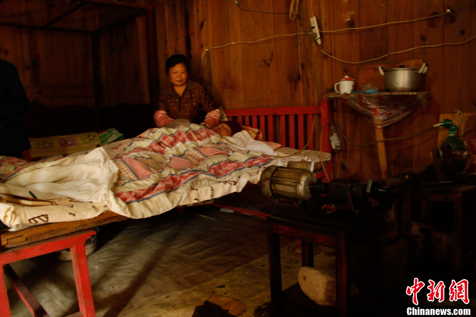 图为母亲王兰芹坐在儿子付学朋床边。汪洋 摄