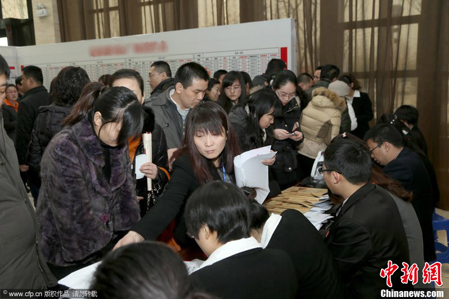 1月26日,在河南省焦作市一楼盘,已选好房源的购房者排队办理缴款等手续。唐玉磊 摄 图片来源:CFP视觉中国