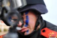 1月下旬,中国北方城市烟台寒风凛冽,在武警烟台支队训练基地,狙击班的战士们在寒风中开始了年度冬季集训。图为狙击手聚精会神等待击发。孙晓峰 摄