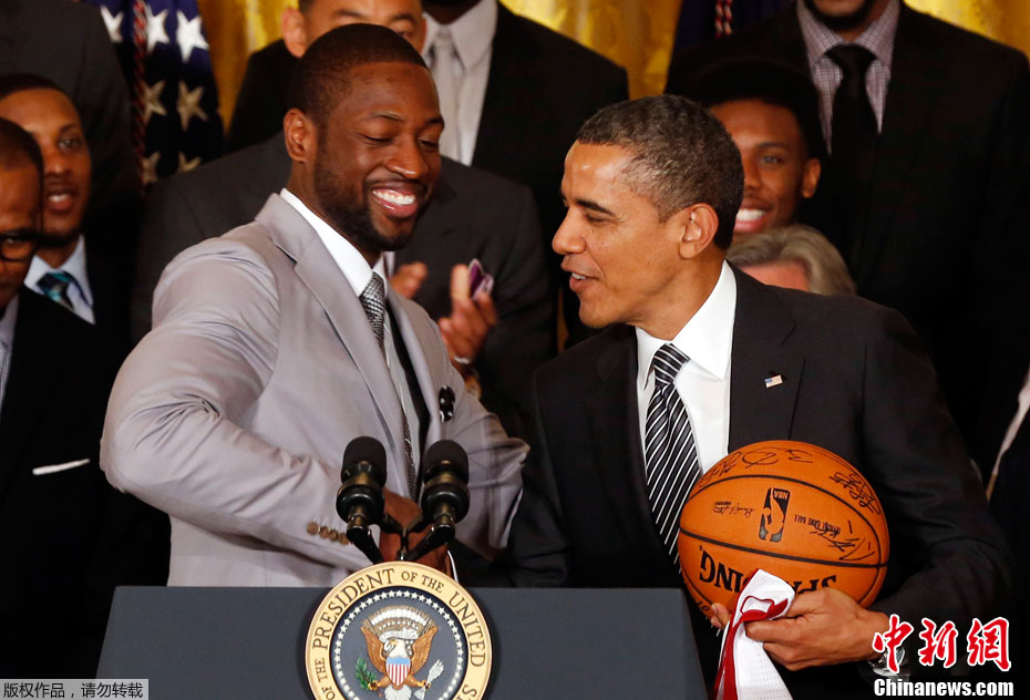 奥巴马白宫接见热火队员 获赠球衣喜笑颜开