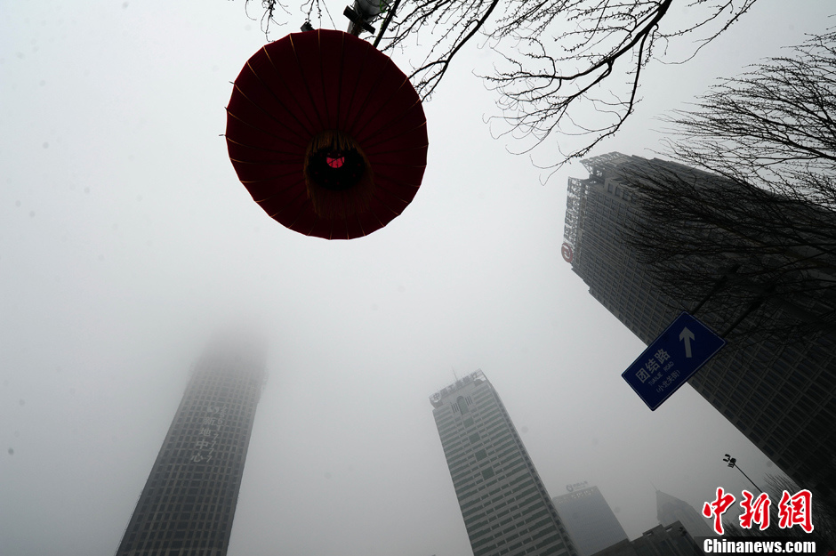 1月31日,沈阳市受大雾入侵,城市能见度较低,严重影响市民的出行。图为浓雾中的沈阳城。中新社发 于海洋 摄